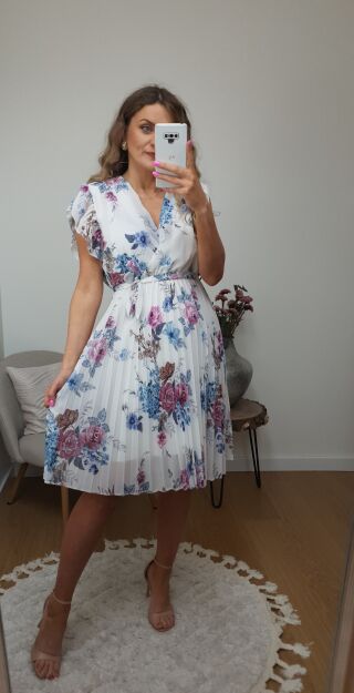 • Ta lekka, plisowana sukienka to idealny wybór na wiosnę i lato. Zwiewny materiał pięknie układa się w ruchu, a fason z wiązaniem w talii podkreśla kobiecą sylwetkę. Sukienka sprawdzi się zarówno na co dzień, jak i na specjalne okazje.