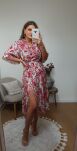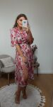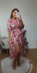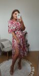 Dodatkowo sukienka jest przewiązywana paskiem z tego samego materiału (pasek z klamrą nie jest w zestawie).