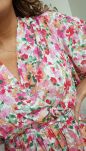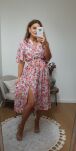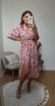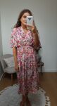 Dodatkowo sukienka jest przewiązywana paskiem z tego samego materiału (pasek z klamrą nie jest w zestawie).
