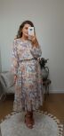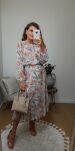 Lekka i zwiewna sukienka midi, która sprawdzi się zarówno na co dzień, jak i na większe wyjścia. Góra sukienki jest zabudowana, a długie rękawy zakończone są gumką, co dodaje jej subtelnej elegancji. Dzięki gumce w talii i falbanie na dole, sukienka pięknie podkreśla sylwetkę i zapewnia wygodę. Podszewka zapewnia komfort noszenia przez cały dzień.
