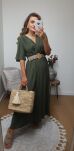 Ta wyjątkowa sukienka maxi to połączenie klasyki i wygody. Wykonana z przewiewnej wiskozy, doskonale układa się na sylwetce, podkreślając jej atuty. Kopertowy krój, szerokie rękawy i rozcięcie na nodze nadają jej lekkości i subtelnej zmysłowości. Dołączony pasek pozwala dopasować sukienkę do talii, podkreślając jej kobiecy charakter.