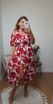 Dodatkowo sukienka jest przewiązywana paskiem z tego samego materiału (pasek z klamrą nie jest w zestawie).