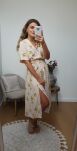 Dodatkowo sukienka jest przewiązywana paskiem z tego samego materiału (pasek z klamrą nie jest w zestawie).