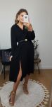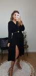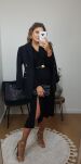 Dodatkowo sukienka jest przewiązywana paskiem z tego samego materiału (pasek z klamrą nie jest w zestawie).
