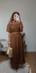 Fason maxi z elastyczną gumką w talii pięknie podkreśla sylwetkę, a dołączony pasek pozwala na dowolne stylizowanie.